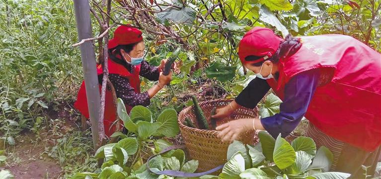 圖為莎列村村民采摘黃瓜。