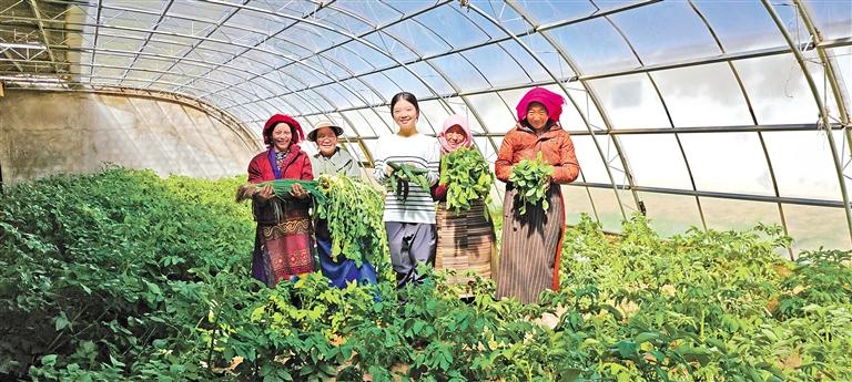 2017年,雙湖縣投建了11座蔬菜大棚。經(jīng)過當(dāng)?shù)馗刹亢湍撩駛兣Ω藕托量嘣囼?,現(xiàn)在種植的蔬菜瓜果年產(chǎn)量可達4噸,每年給當(dāng)?shù)啬撩袢罕姲l(fā)放蔬菜分紅和現(xiàn)金分紅共計12萬元左右,857人從中受益。