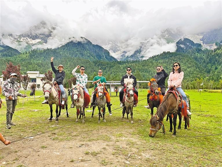 圖為來自廣東的游客在康木村體驗(yàn)騎馬。記者 張猛 攝
