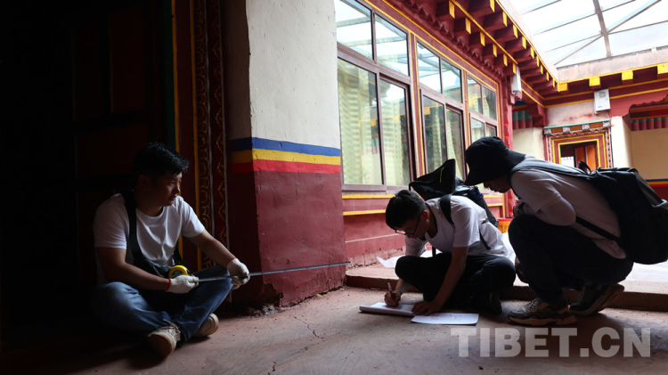 在十幾天的綜合科考活動(dòng)中,科考團(tuán)隊(duì)的青年隊(duì)員們持續(xù)克服高原缺氧、路途顛簸和水土不服等各方面的困難,順利完成了綜合科考隊(duì)下達(dá)的每日科考任務(wù)。身處青藏高原的腹地,青年隊(duì)友們每天早上八點(diǎn)半從營(yíng)地出發(fā),完成各類田野調(diào)查和測(cè)繪工作,歸來已經(jīng)是晚上的八、九點(diǎn)鐘。在吃過晚飯后,他們會(huì)著手整理每天的田野工作成果,直至深夜。在這樣的工作強(qiáng)度之下,青年隊(duì)員們最終完成了五個(gè)鄉(xiāng)鎮(zhèn)、八個(gè)行政村和二十一個(gè)自然村的共計(jì)六十棟古建筑的測(cè)繪工作。