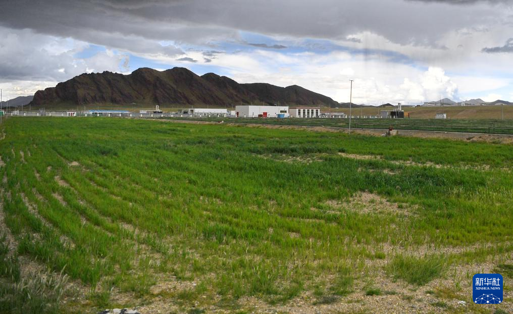 措勤縣高原生態(tài)畜牧業(yè)現(xiàn)代化養(yǎng)殖一體化產(chǎn)業(yè)綜合基地合作社人工草場和遠(yuǎn)處的產(chǎn)業(yè)園區(qū)廠房(8月19日攝)。新華社記者 張汝鋒 攝