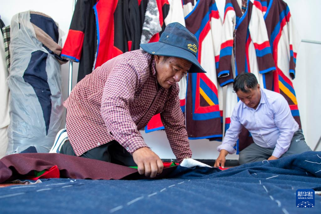 一位村民在縫制羊毛被(8月24日攝)。新華社發(fā)(旦增努布 攝)