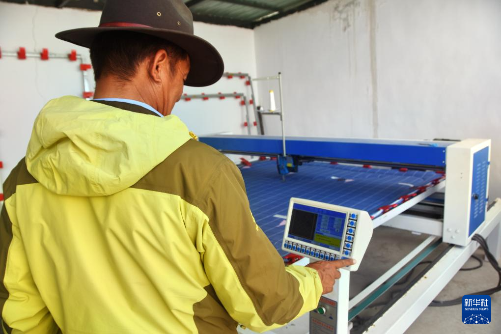 一位村民在裁剪布料(8月24日攝)。新華社發(fā)(旦增努布 攝)