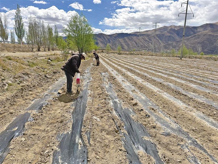 “這些土地,過去沙化太嚴(yán)重,無法保存水分,我們經(jīng)過不斷的翻耕改良后,才有了目前的這850畝土地?!蔽鞑厍睾剔r(nóng)業(yè)綜合開發(fā)有限公司工作人員洛珠達(dá)瓦介紹。
