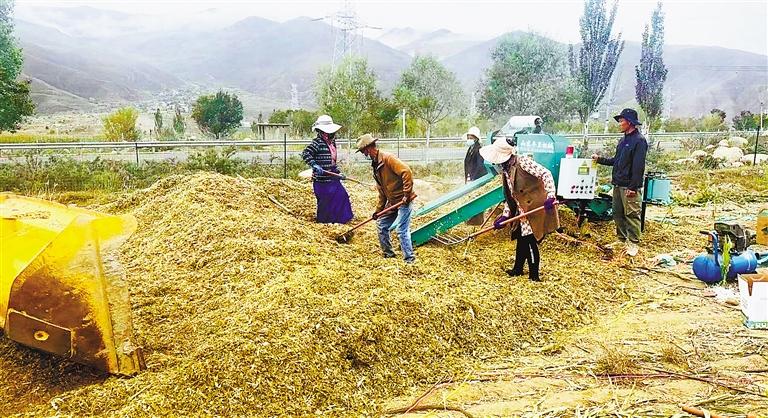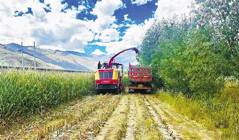 走在雅魯藏布江沿岸,成片的玉米地呈現(xiàn)眼前,讓人意想不到的是,半年前這里還是一片荒地。“我們今年種植玉米850多畝,其中,600多畝的玉米長勢良好,預(yù)計每畝可收玉米飼草2噸以上?!甭逯檫_(dá)瓦說。目前,玉米秸稈已陸續(xù)開始收割。