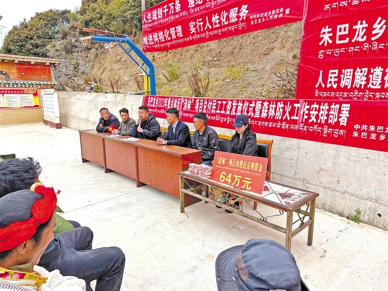 圖為發(fā)放農(nóng)牧民群眾工資現(xiàn)場(chǎng)。記者 索朗旺久 攝