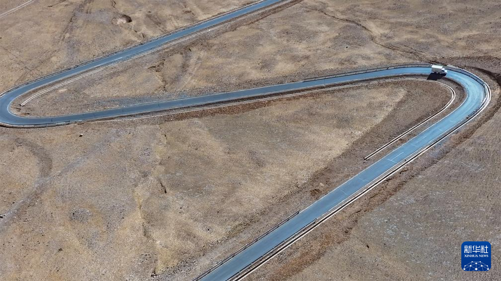 申扎縣供銷合作社為馬躍鄉(xiāng)貝嘎四村偏遠鄉(xiāng)鎮(zhèn)果蔬配送試點項目直銷點配送新鮮果蔬的貨車,行駛在盤山公路上,這個村距離申扎縣城150公里(無人機照片,1月5日攝)。新華社記者 旦增尼瑪曲珠 攝