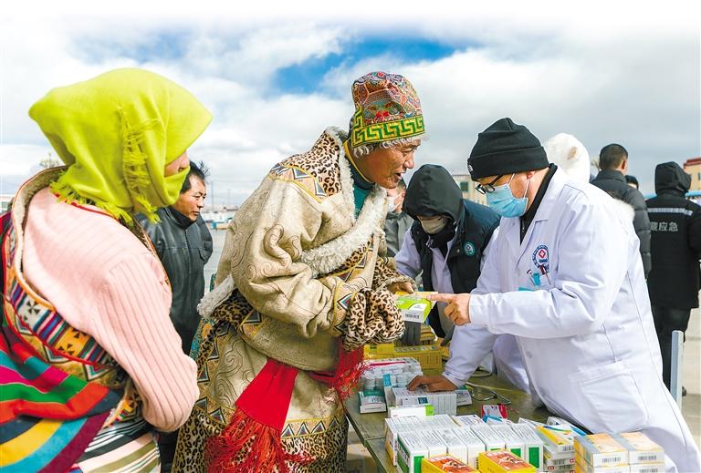 圖為“七送”活動(dòng)現(xiàn)場,措勤縣人民醫(yī)院醫(yī)生為群眾送醫(yī)送藥。 措勤縣委宣傳部供圖