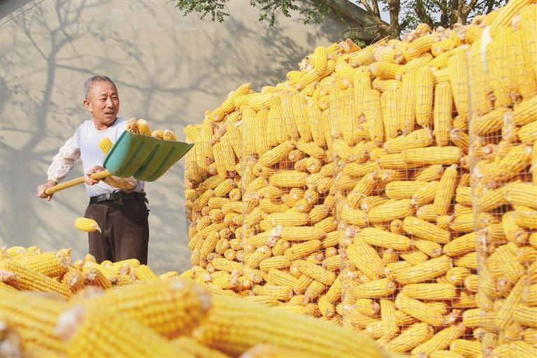 山東省高密市姜莊鎮(zhèn)后老屯村——村民將收獲的玉米封囤歸倉。