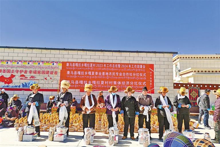 圖為康馬縣涅如麥鄉(xiāng)達(dá)巴村分紅儀式現(xiàn)場。