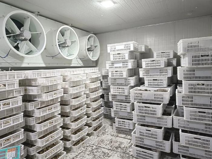 嘎托鎮(zhèn)擺放在倉(cāng)庫(kù)的松茸正在等待進(jìn)一步加工處理