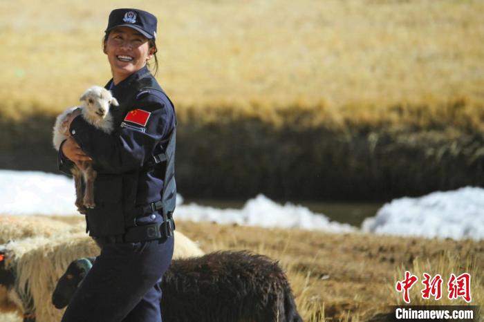 圖為日土邊境派出所民警抱著牧民的羊羔一起轉(zhuǎn)場(chǎng)。任博 攝