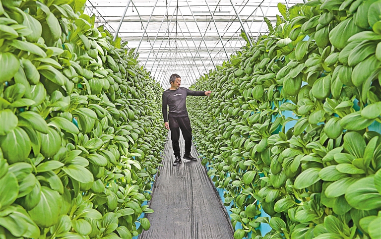 圖為那曲市浙江產(chǎn)業(yè)援藏精準(zhǔn)扶貧示范基地的工作人員查看氣霧栽培蔬菜的長(zhǎng)勢(shì)。記者 次旺 攝