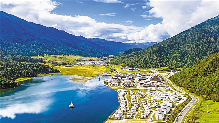 圖為廣東省對(duì)口支援建設(shè)的林芝市巴宜區(qū)魯朗國(guó)際旅游小鎮(zhèn)。(圖片由林芝市魯朗景區(qū)管理委員會(huì)提供)