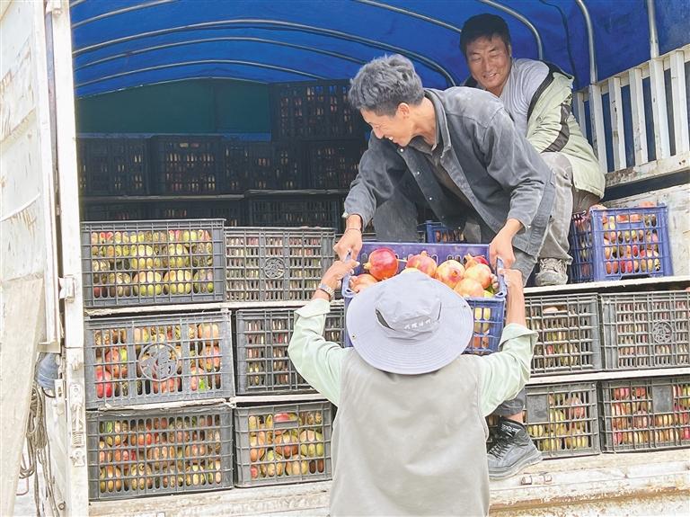 圖為昌西村果農(nóng)將石榴裝車,準(zhǔn)備外運銷售。記者 劉楓 通訊員 吳子偉 攝
