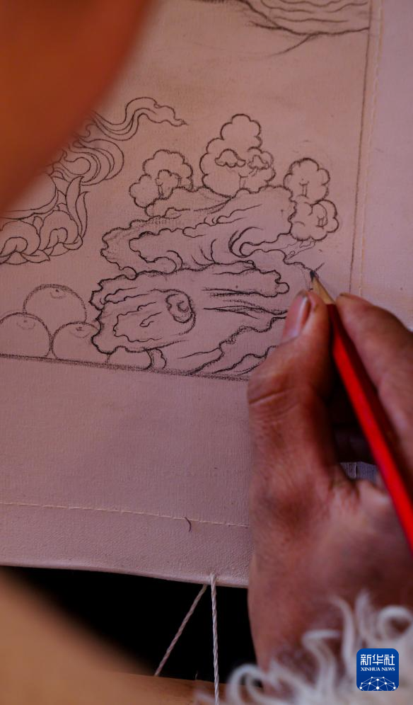 11月22日,昌都市丁青縣擁忠文化藝術(shù)中心非遺扶貧就業(yè)工坊學(xué)員在畫唐卡。新華社記者 格桑朗杰 攝