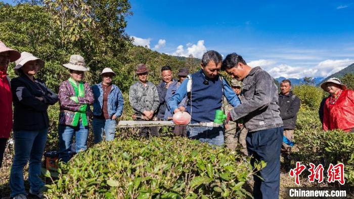 圖為技術(shù)專家詳細(xì)講解茶樹修剪的科學(xué)方法。墨脫縣人力資源和社會保障局供圖