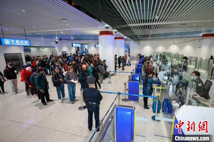2024年,西藏邊檢總站累計查驗出入境人員57.2萬人次,同比上升105.8%,查驗出入境交通運輸工具37954輛(架)次,同比上升29.3%。