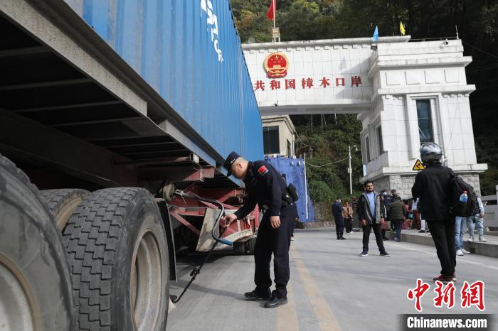 圖為尼泊爾貨車從吉隆口岸國門經(jīng)過。肖富貴 攝