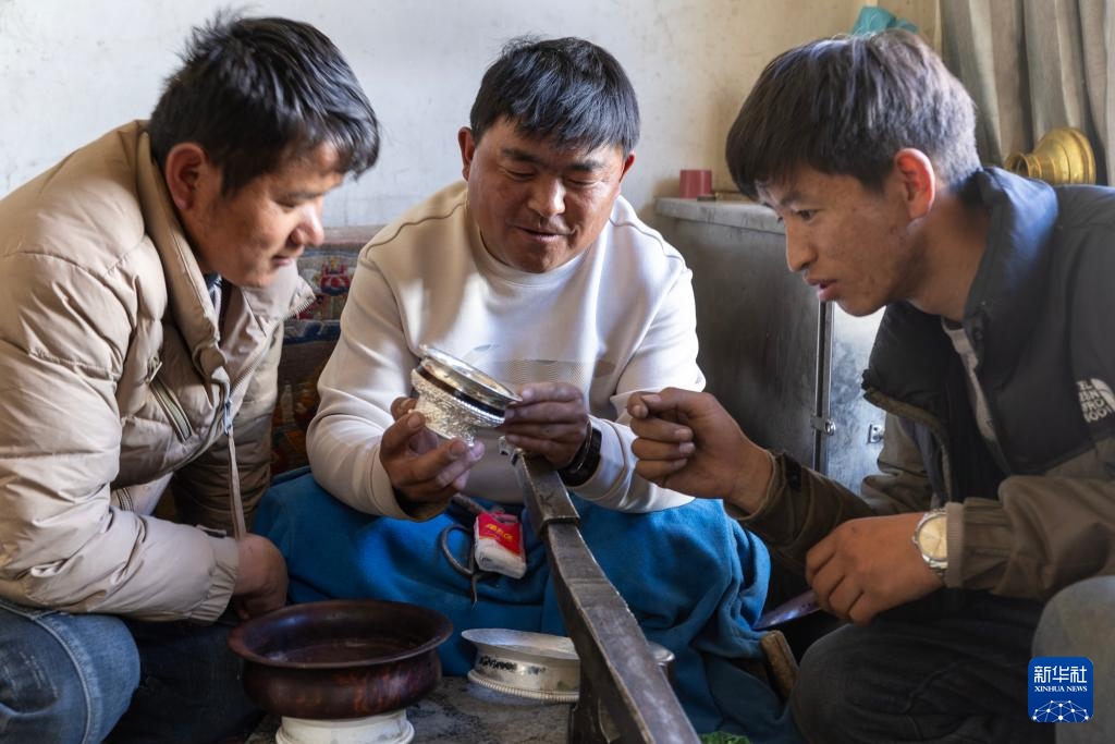 3月6日,扎西吉彩的手工匠人在討論銀器的造型。新華社記者 姜帆 攝