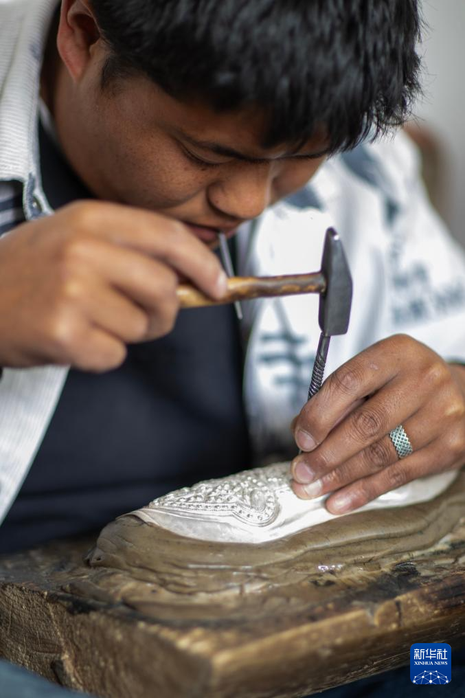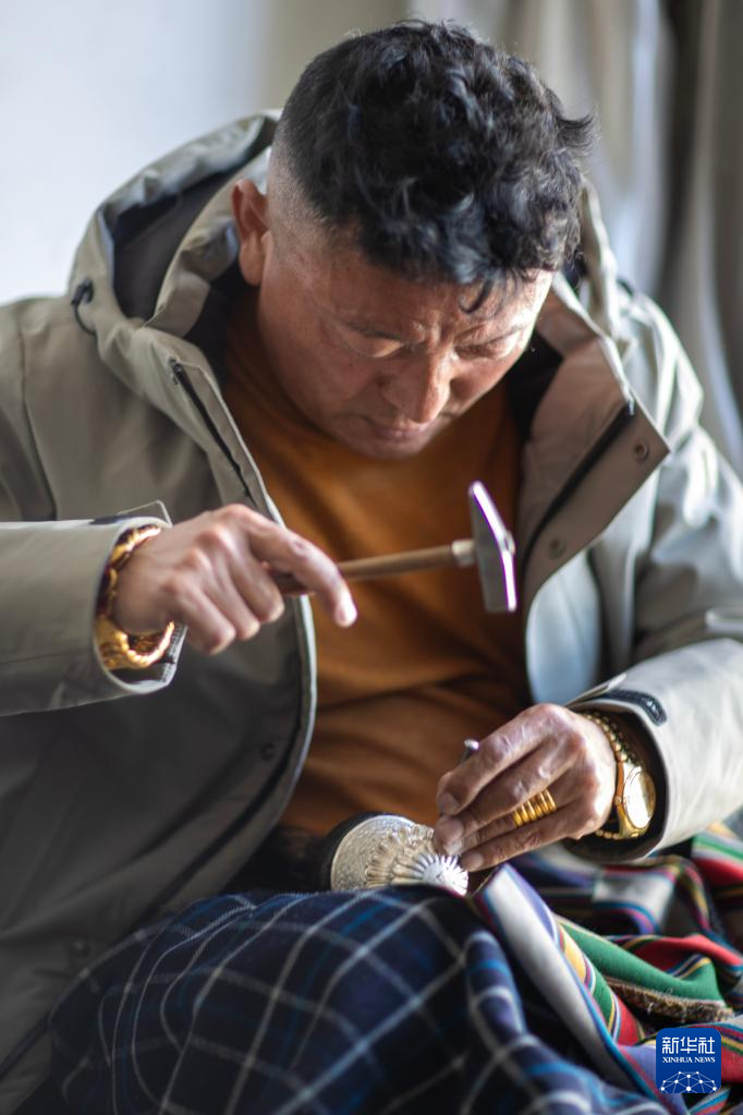 3月6日,扎西吉彩的手工匠人在給銀器塑形。新華社記者 姜帆 攝