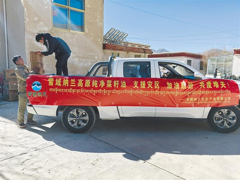 今年1月,西藏納蘭生態(tài)產業(yè)有限公司運送菜籽油支援定日縣地震災區(qū)。