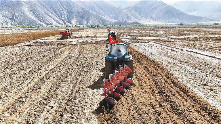 圖為播種機(jī)在田間作業(yè)。記者 旦增嘎瓦 攝
