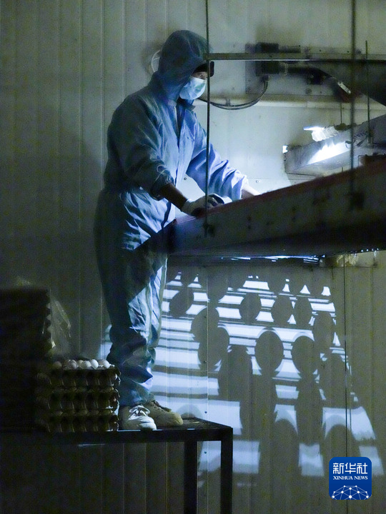 工人在西藏宏農(nóng)的現(xiàn)代化智能蛋雞養(yǎng)殖場(chǎng)內(nèi)的流水線上作業(yè)(2024年6月14日攝)。新華社記者 丁汀 攝