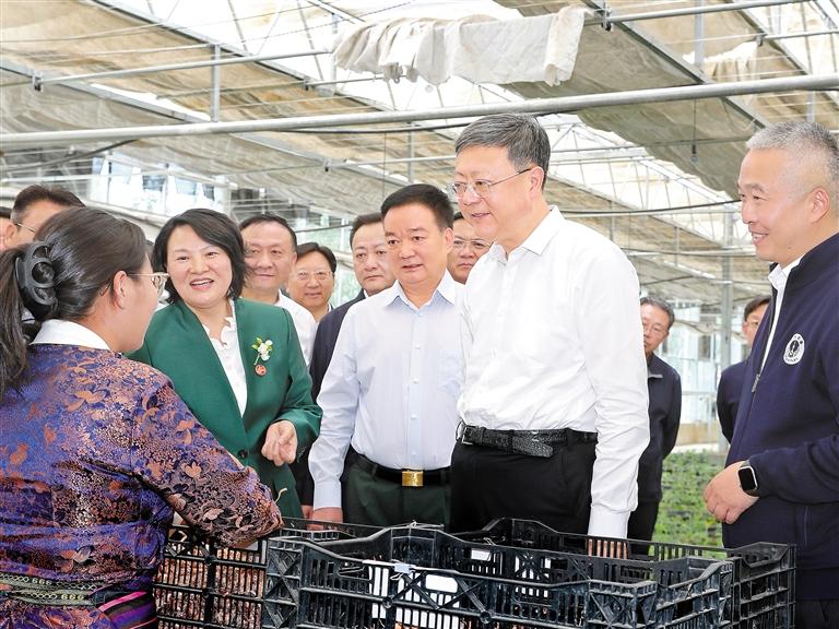 來到薩迦縣國家現(xiàn)代農(nóng)業(yè)產(chǎn)業(yè)園,溫室大棚內(nèi)作物長勢良好,一派生機(jī)盎然。近年來,在自治區(qū)黨委的大力推動(dòng)下,上海市援藏力量主動(dòng)作為,助力當(dāng)?shù)卮罅Πl(fā)展高原特色農(nóng)業(yè),不斷拓寬群眾增收渠道。代表團(tuán)走進(jìn)產(chǎn)業(yè)園,聽取高原藜麥種源科技和產(chǎn)業(yè)發(fā)展、藏紅花種植技術(shù)創(chuàng)新和產(chǎn)業(yè)幫扶情況介紹,察看相關(guān)產(chǎn)品展示,與園區(qū)、企業(yè)負(fù)責(zé)人和科研團(tuán)隊(duì)深入交流,就進(jìn)一步推進(jìn)高寒地區(qū)現(xiàn)代農(nóng)業(yè)全產(chǎn)業(yè)鏈高質(zhì)量發(fā)展進(jìn)行討論。兩地同志表示,要立足雙方優(yōu)勢,把上海資金、管理、科技、人才等優(yōu)勢與西藏資源、區(qū)位等優(yōu)勢相結(jié)合,進(jìn)一步做強(qiáng)特色產(chǎn)業(yè)、打響高原品牌,在以銷定產(chǎn)、產(chǎn)品推廣等方面開展深度合作,促進(jìn)西藏優(yōu)質(zhì)資源變成好產(chǎn)品、走向大市場、賣出好價(jià)錢,有效帶動(dòng)群眾就業(yè)增收,讓各族群眾錢包鼓起來、日子好起來。