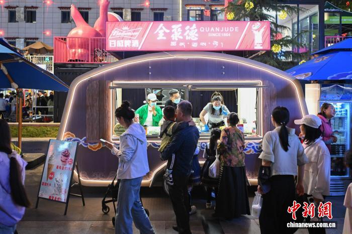 自7月15日開街以來,西藏自治區(qū)拉薩市城關(guān)區(qū)宇拓路370米長的“不夜城”迅速躥紅,每晚吸引近萬名游客與市民。改造后的街區(qū)內(nèi),集裝箱藝術(shù)區(qū)、霓虹餐車矩陣錯(cuò)落有致,169個(gè)攤位熱鬧非凡。藏式牦牛肉燒烤、青稞美食等攤位前排起長隊(duì),唐卡、藏香等文創(chuàng)產(chǎn)品人氣高漲。游客在此既能大快朵頤,也能沉浸式體驗(yàn)藏地文化,“拉薩不夜城”正點(diǎn)亮高原夏夜,成為展示拉薩魅力的新窗口。中新社記者 貢嘎來松 攝