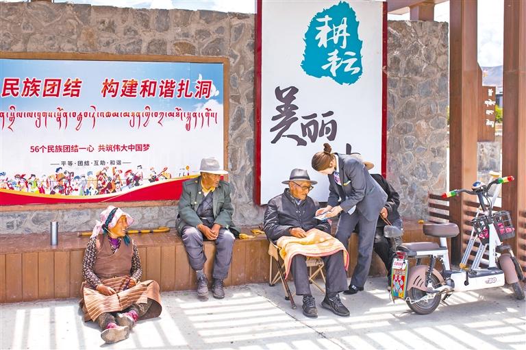 農行客戶經理在扎洞村向老年客戶宣講金融知識。記者 丹增平措 攝