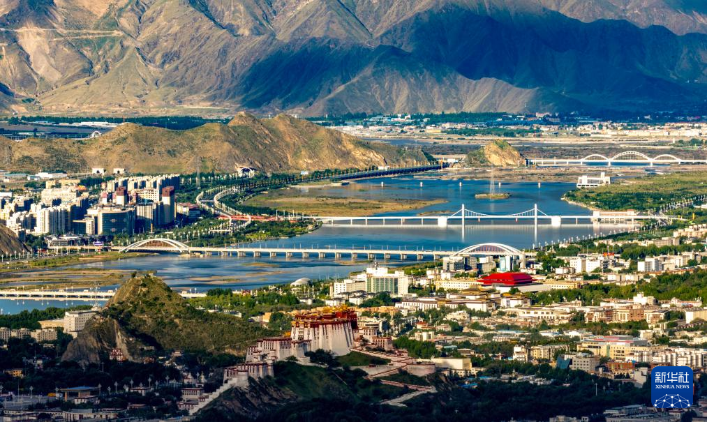 這是7月30日拍攝的拉薩河風(fēng)光,由近及遠(yuǎn)分別是連心橋、柳梧大橋、和美橋和青藏鐵路拉薩河特大橋。新華社記者 姜帆 攝