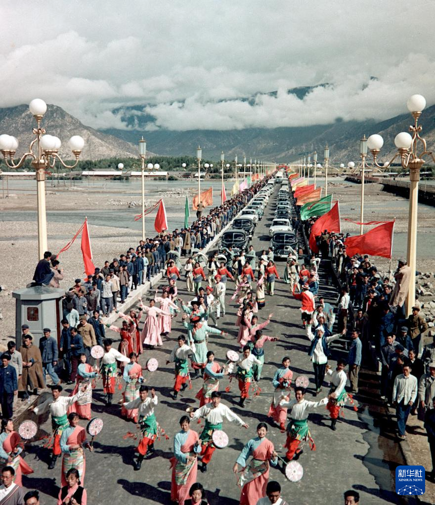 拉薩大橋落成通車典禮(1965年8月25日攝)。新華社發(fā)