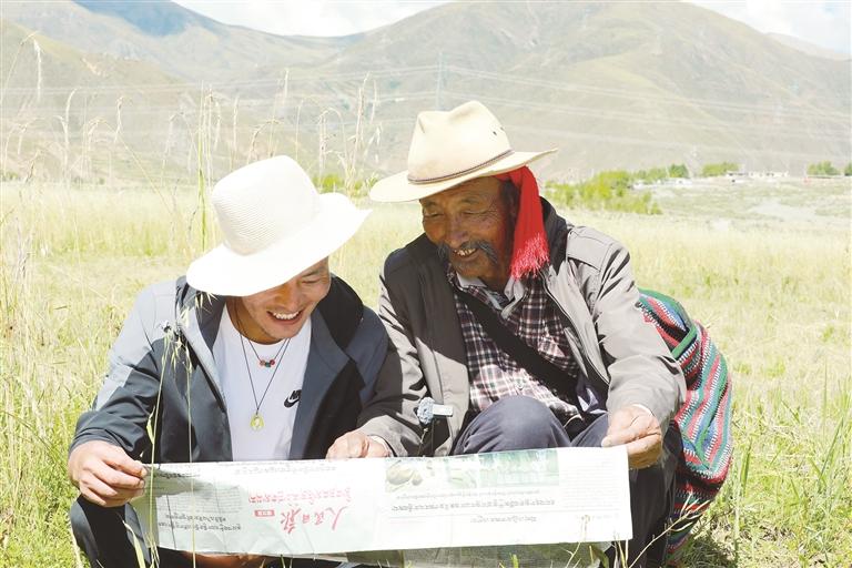 貢桑次旺站在田埂上,身旁是沉甸甸、顆粒飽滿的青稞,面前圍坐的村民們放下農(nóng)具,眼中滿是對新生活的期待。他掏出精心準(zhǔn)備的資料,結(jié)合西藏自治區(qū)成立60年以來的發(fā)展變遷,用質(zhì)樸的語言講解大會精神核心要義,“習(xí)近平總書記親臨西藏,這是黨中央對咱們西藏各族人民的親切關(guān)懷!想想咱們卓村的變化,不正是西藏發(fā)展的縮影嗎?”