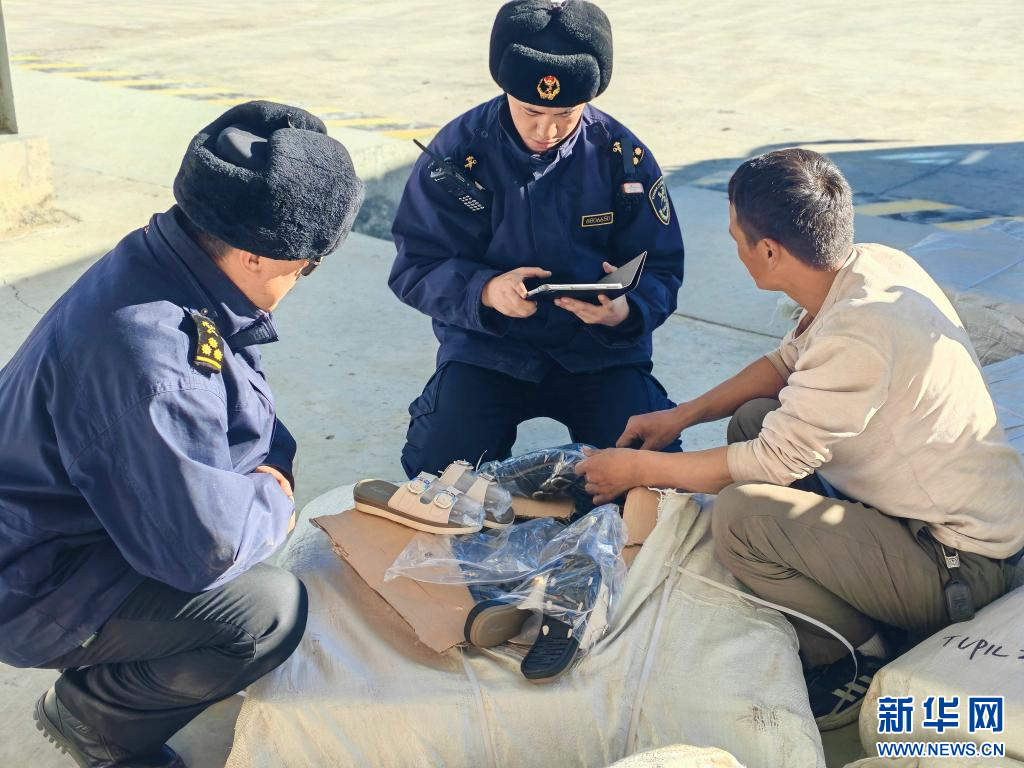 23日,拉薩海關所屬日喀則海關關員在里孜口岸查驗出口貨物。(拉薩海關供圖)