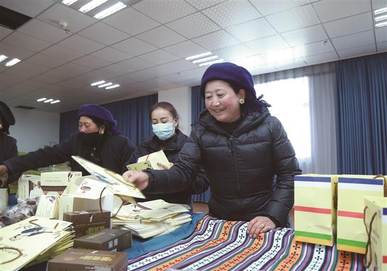 扎西多吉公司的員工正在打包產(chǎn)品。