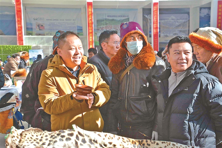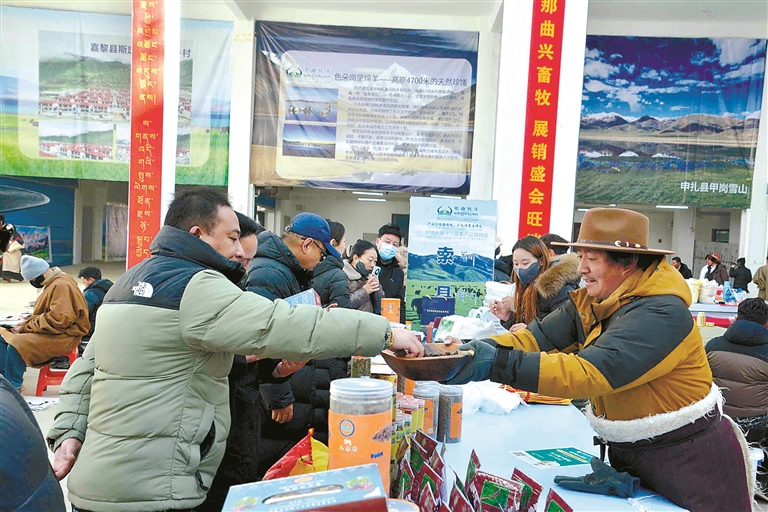 這次展銷會不僅線下熱鬧,線上也同樣火爆。為了讓各類產(chǎn)品走得更遠,展銷會特意搭建起“線上直播帶貨+線下現(xiàn)場選購”的雙線銷售通道,一邊是線下市民現(xiàn)場挑、現(xiàn)場買,新鮮看得見、品質(zhì)摸得著;一邊是主播對著鏡頭,向全國網(wǎng)友推介那曲好物,讓遠在千里之外的消費者也能品嘗到那曲味道。同時,展銷會還邀請電商平臺、采購商代表和參展商精準對接,幫本土農(nóng)畜產(chǎn)品打通銷路,再也不愁“酒香巷子深”;積極引導機關、企事業(yè)單位及社會各界參與消費幫扶,以“以購代扶”“以買促銷”的方式助力本土產(chǎn)業(yè)發(fā)展,在全市形成“人人支持本土產(chǎn)業(yè)、人人參與鄉(xiāng)村振興”的濃厚氛圍。