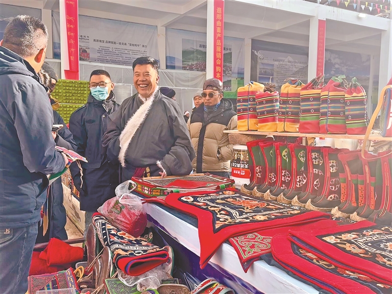 走進展銷會現(xiàn)場,最直觀的感受就是品類全、品質(zhì)好,藏北特色撲面而來。全市11個縣(區(qū))的1485家參展商齊聚于此,帶來100余種高原特色產(chǎn)品,把草原上的好東西都搬到了消費者面前。特色畜產(chǎn)品是當之無愧的消費“主力軍”,“那曲牦?!钡乩順酥井a(chǎn)品、嘎爾德等區(qū)域品牌,憑借“云端牧場、黃金奶源”的獨特品質(zhì),一亮相就成了爆款,不少市民圍著展臺詢價選購。