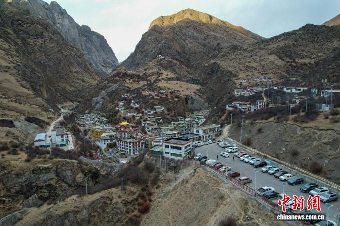 1月2日傍晚,拉薩市墨竹工卡縣德仲溫泉附近的停車(chē)場(chǎng)幾乎停滿(mǎn)了車(chē)輛。(無(wú)人機(jī)畫(huà)面)中新社記者 江飛波 攝