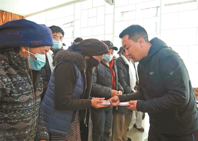 圖為工作人員為群眾發(fā)放慰問金。記者 格桑倫珠 劉琳琳 攝