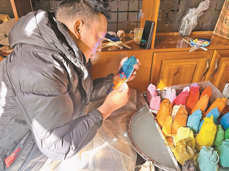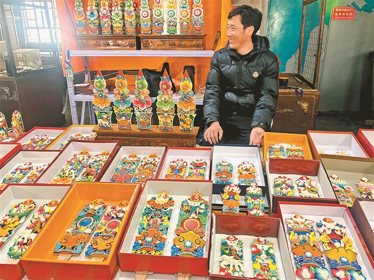 “我從2013年開始學做酥油花,到現(xiàn)在有了不小的長進?!贝稳手钢矍暗乃钟突ㄗ髌方榻B道,這些圖案有的象征家庭和睦、民族團結(jié),有的祈愿老人康健、稚童茁壯?!耙郧皼]學這門手藝的時候,只能在家閑著。后來跟著老師系統(tǒng)學習制作酥油花,不光掌握了這門手藝,還能靠它養(yǎng)活自己和家人?!贝稳恃哉Z間滿是感激,談及未來更是充滿期待,他表示,等自己技藝精進、達到一定造詣后,也想像老師那樣收徒傳藝,有十足的信心把這門非遺手藝好好傳承下去。