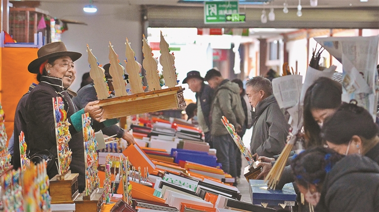 圖為拉薩八廓商城三樓酥油花攤位。通訊員 多吉卓瑪 旦增尼瑪 攝