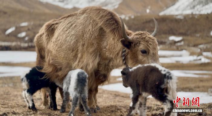 圖為西藏比如縣亞貢母牦牛與其產(chǎn)下的三胞胎牛犢。 比如融媒供圖