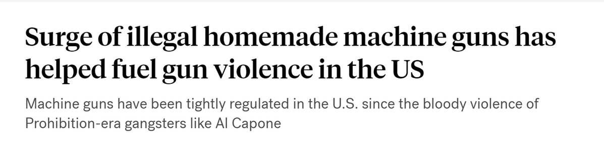據(jù)報道,由于3D打印制作或在線購買的小型金屬或塑料零件的驚人增長,全美各地近年來都出現(xiàn)了使用經(jīng)改裝的全自動槍支制造的槍擊事件。盡管針對機槍的禁令可以追溯到上世紀二三十年代的禁酒令時期,但有關(guān)部門表示,格洛克開關(guān)、連發(fā)阻鐵等改裝零件的大量增加,使得普通人能夠?qū)⒑戏ǖ陌胱詣訕屩Ц难b得更加危險,進而助長了槍支暴力。
