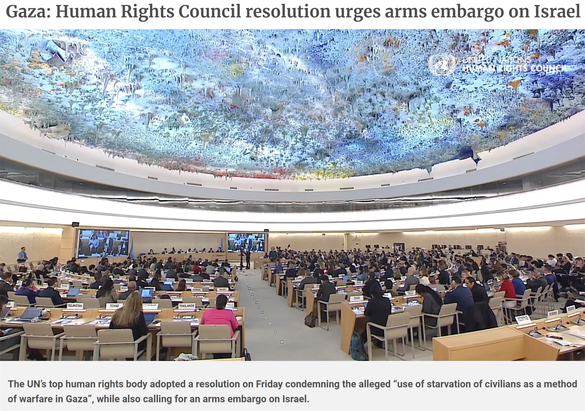 同一天,在日內瓦閉幕的聯合國人權理事會第55屆會議通過一項決議,對以色列嚴重侵犯人權和嚴重違反國際人道主義法行為的相關報告表示關切。