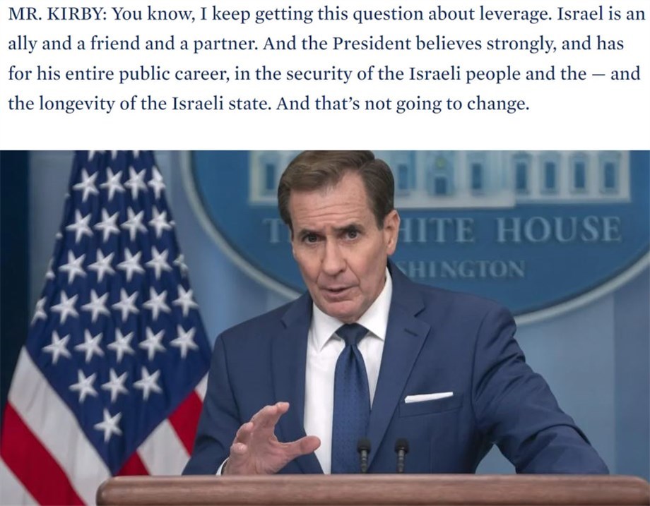 白宮國家安全委員會戰(zhàn)略溝通協調員柯比當天在記者會上被反復追問“美國是否會切斷對以色列的武器供應”時一味回避躲閃,但在回答美以關系問題時卻斬釘截鐵。