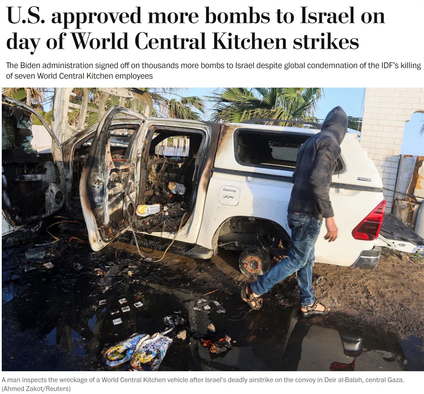 文章認為,拜登政府早就應該利用真正的壓力——包括威脅中斷武器供應——來迫使以色列政府允許外界向加沙“不受阻礙地提供”食品和醫(yī)療援助。但相反,拜登團隊最近卻批準再向以軍提供數千枚炸彈,“這發(fā)出了完全錯誤的信號”。