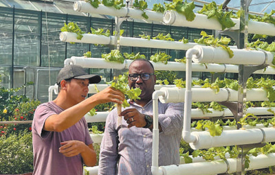 中國援多米尼克農(nóng)業(yè)技術(shù)合作項目始于2005年,目前已開展至第八期。項目引進(jìn)了多個高附加值農(nóng)作物品種,促進(jìn)了多米尼克農(nóng)業(yè)產(chǎn)業(yè)升級。圖為中多兩國農(nóng)業(yè)專家在觀察水培系統(tǒng)種苗生長情況。