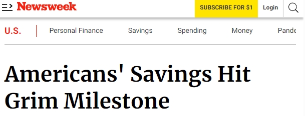 美國富國銀行(Wells Fargo)分享給《新聞周刊》(Newsweek)的一份分析報告顯示,美國人的儲蓄速度正在下降,達(dá)到一年多來的最低水平。與此同時,另一項(xiàng)調(diào)查指出,近38%的美國人不得不動用儲蓄或求助家人朋友以應(yīng)對日常支出。有超過半數(shù)的美國人認(rèn)為通脹是美國當(dāng)前面臨的一個比移民和犯罪等更大的問題。