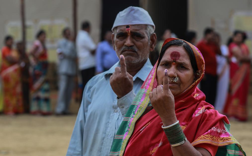 2019年4月29日,在印度孟買,選民伸出做過標(biāo)記的手指。新華社發(fā)